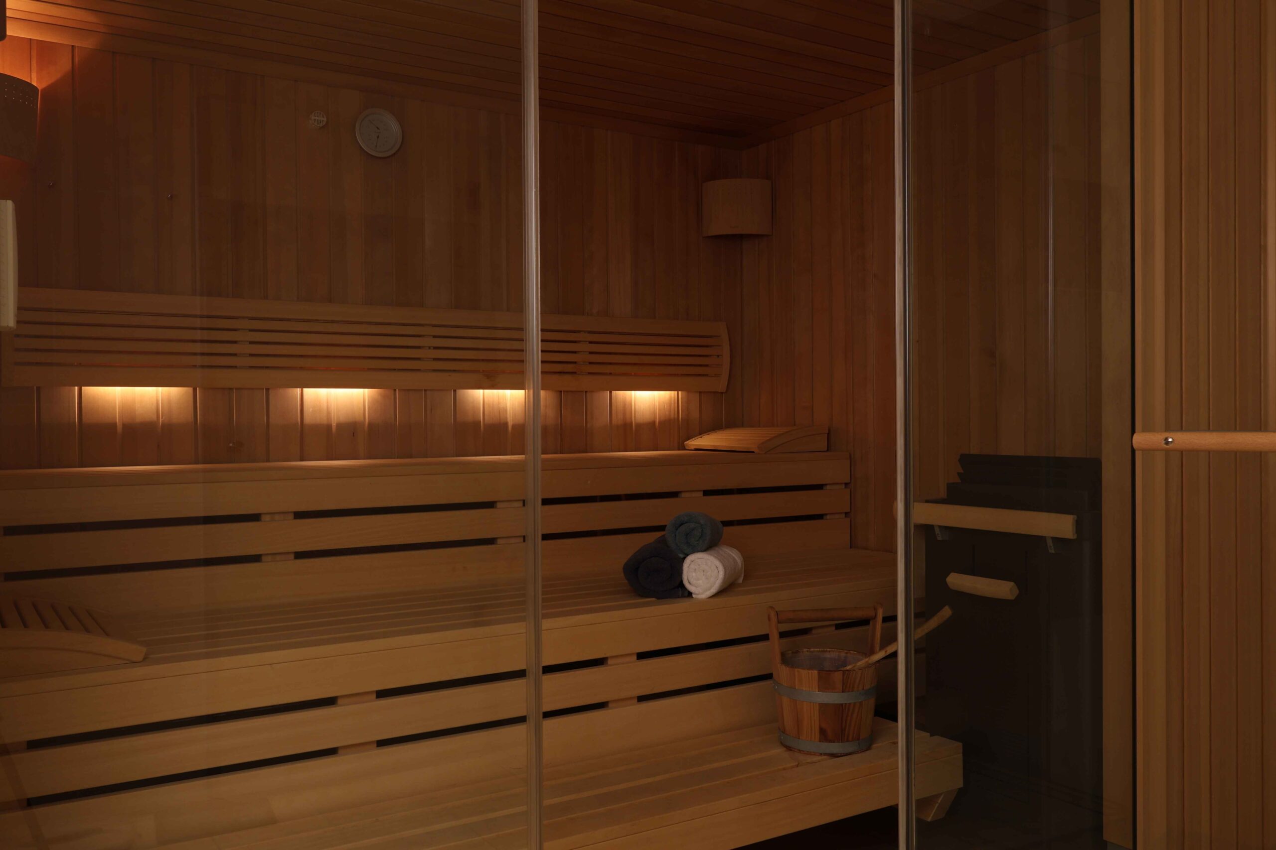 Für zusätzliche Erholung lädt unsere Sauna ein – ein Ort, um die Seele baumeln zu lassen und den Alltag komplett auszublenden. Egal ob Sie sich nach einem langen Tag aufwärmen oder Ihre Wellness-Auszeit perfekt abrunden möchten, unsere Sauna bietet Ihnen einen Rückzugsort voller Wärme und Entspannung.